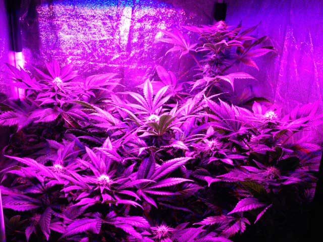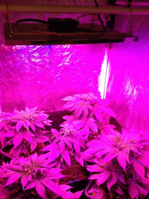 April 9, 2015. Switched to flowering 12/24 today and raised the panel a bit. Please note the panel is still in low mode, 75 watt with lots of blue.