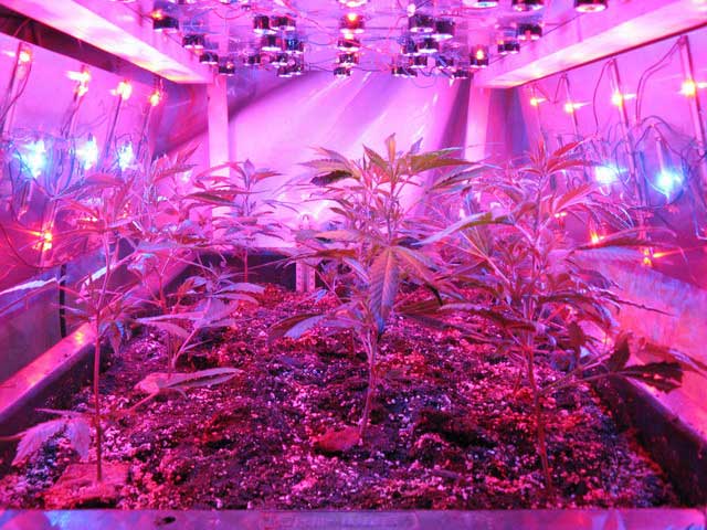 18-8-2009, All plants started to grow very nicely, looks like they are already bushier than without the sidepanels. The Leds on the side panels have no reflectors or lenses, this is done because it gives a better mixture of the different light colors and a more evenly distribution of the light. In a couple of days I will switch to flowering, 12 hours of light every day.