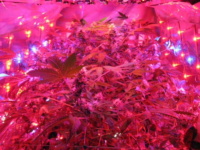 26-10-2009, Amount of dry herb is a nice 53 grams, it is much better than before, because this time flowering took 9 weeks instead of 14 or more. However, I would love to have gotten 80 grams :-) Total energy consumption, including timer and power supplies, for vegging and flowering is 79,885 KWH. This means I got 0,66 grams per KWH. Please compare my result with this well known YouTube video about Led-growing: they got 0,36 grams/KWH with a UFO video